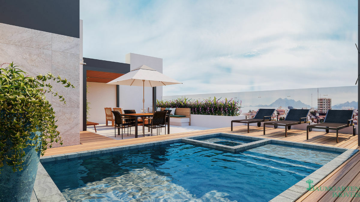 Pavimento exclusivo para entretenimento ao ar livre, amplo terraço arborizado Salão de festas social Espaço gourmet Espaço fitness Bicicletário Piscina no ático com vista panorâmica.